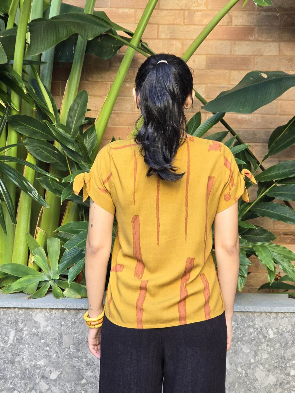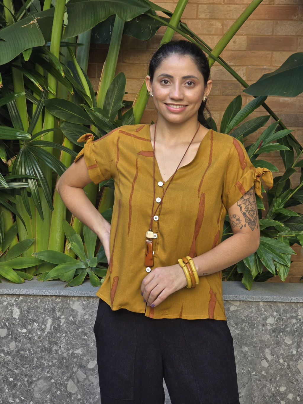 Blusa 100% viscose com decote v e laco na manga que da um charme nessa Blusa básica