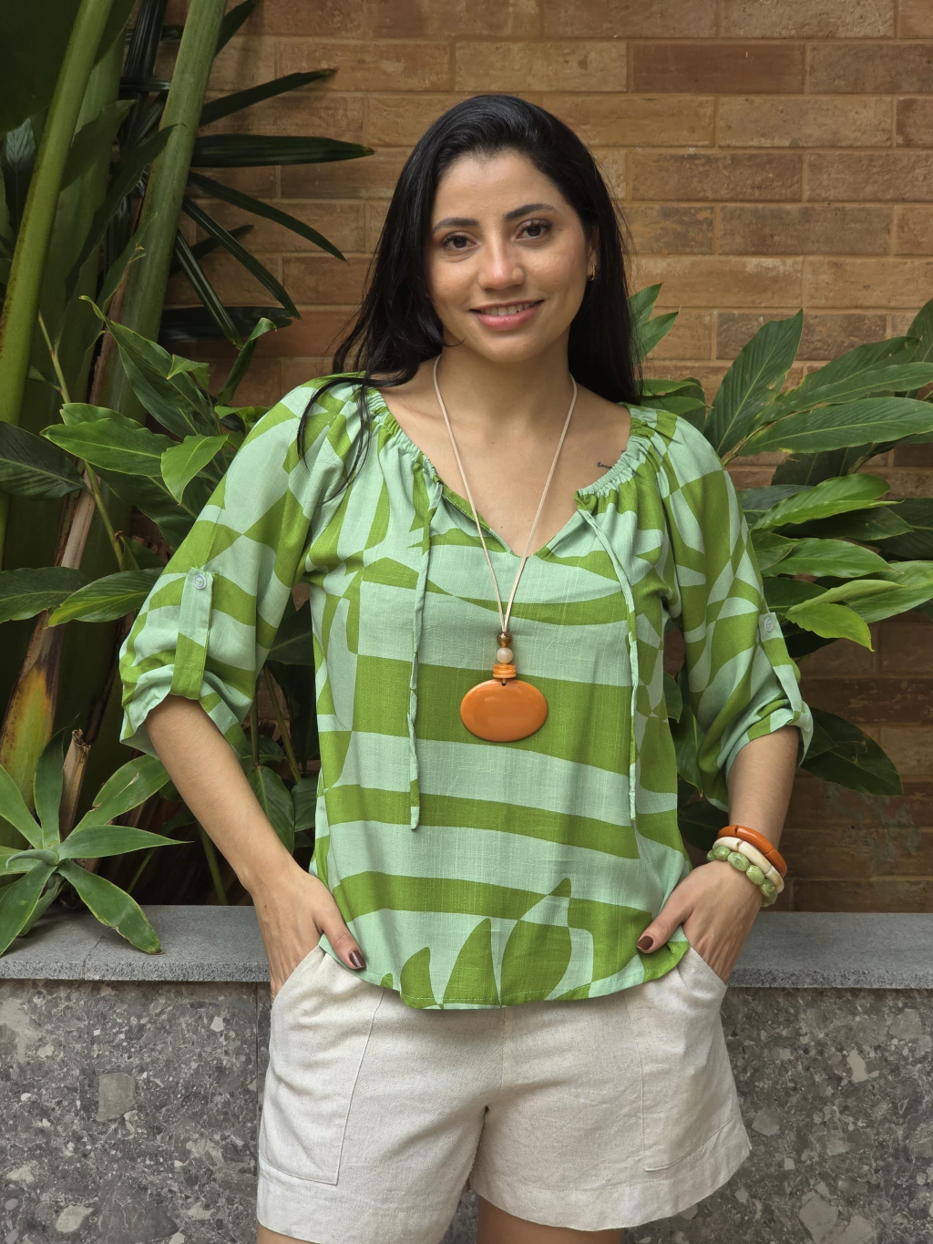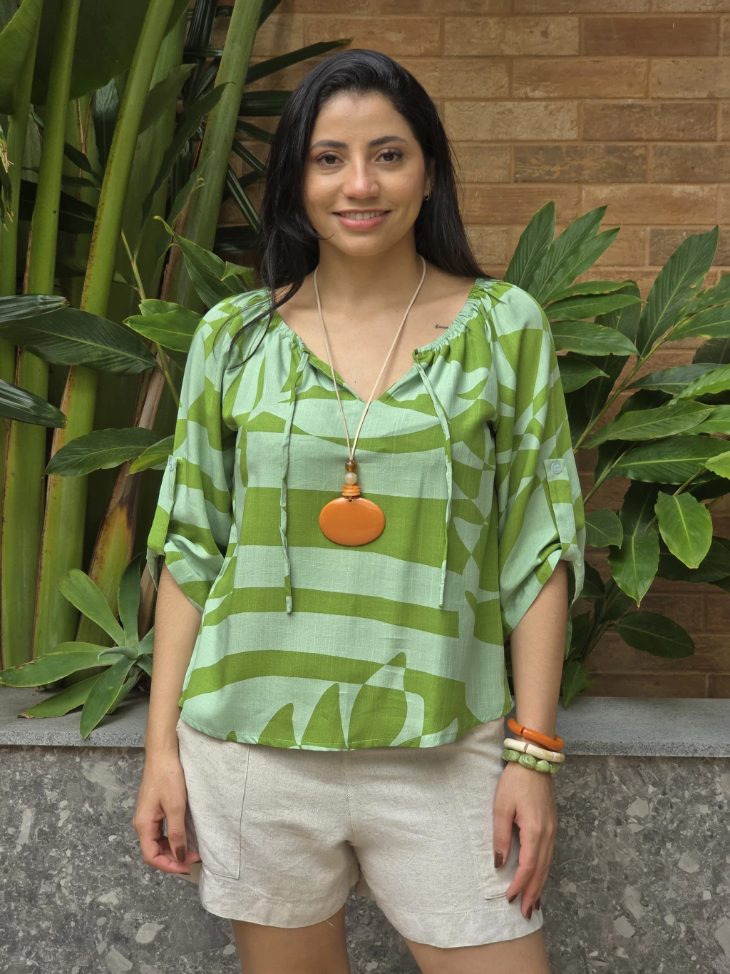 Blusa 100% viscose, com detalhe alheta na manga
