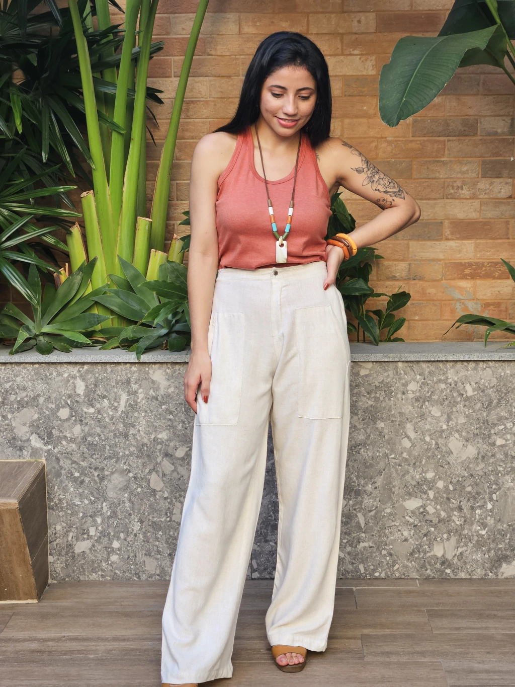 CALÇA COM 80% VISCOSE E 20% LINHO