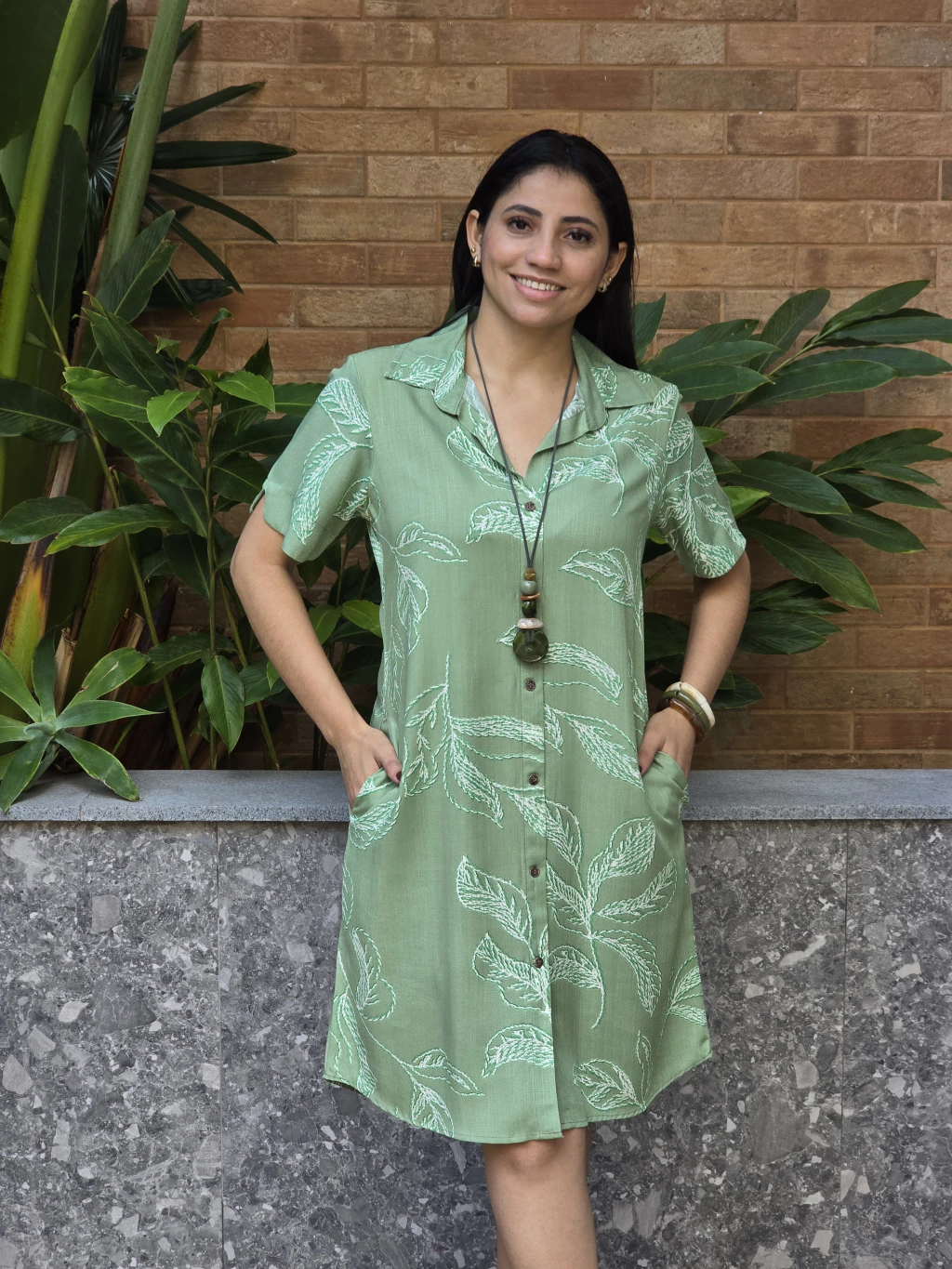 Vestido 100%  Viscose  Midi com bolso e manga Curta