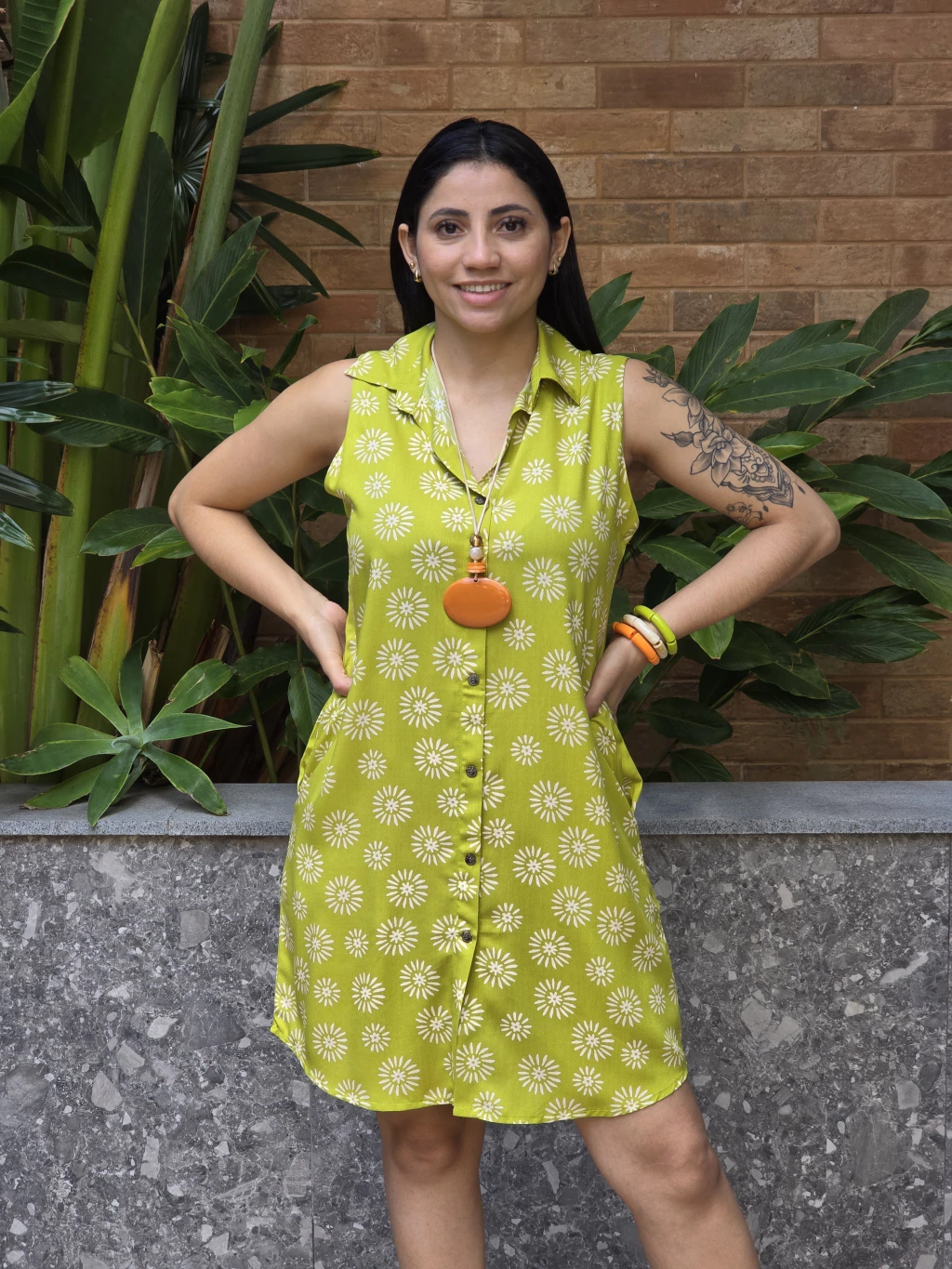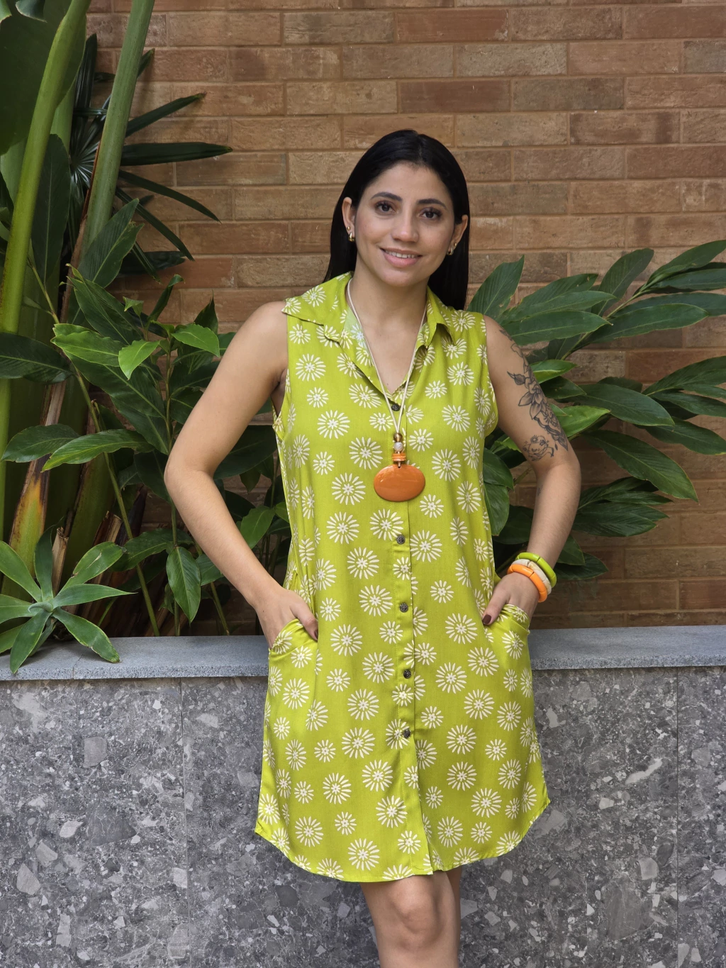 Vestido 100% Viscose Midi com bolso e sem manga BOTÕES NÃO ABREM