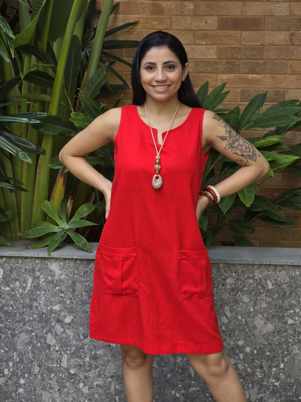 Vestido de linho com viscose comprimento no joelho modelagem confortável não marca o quadril