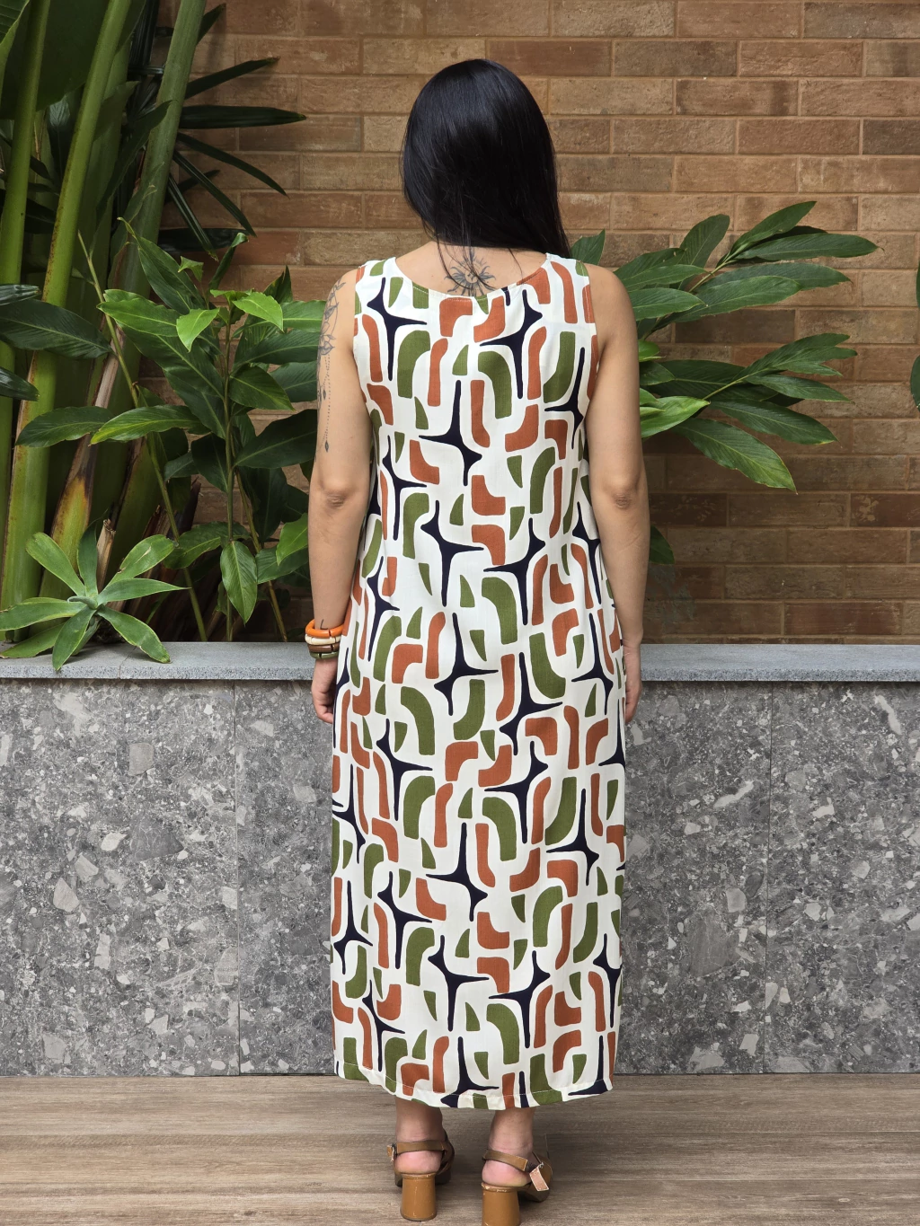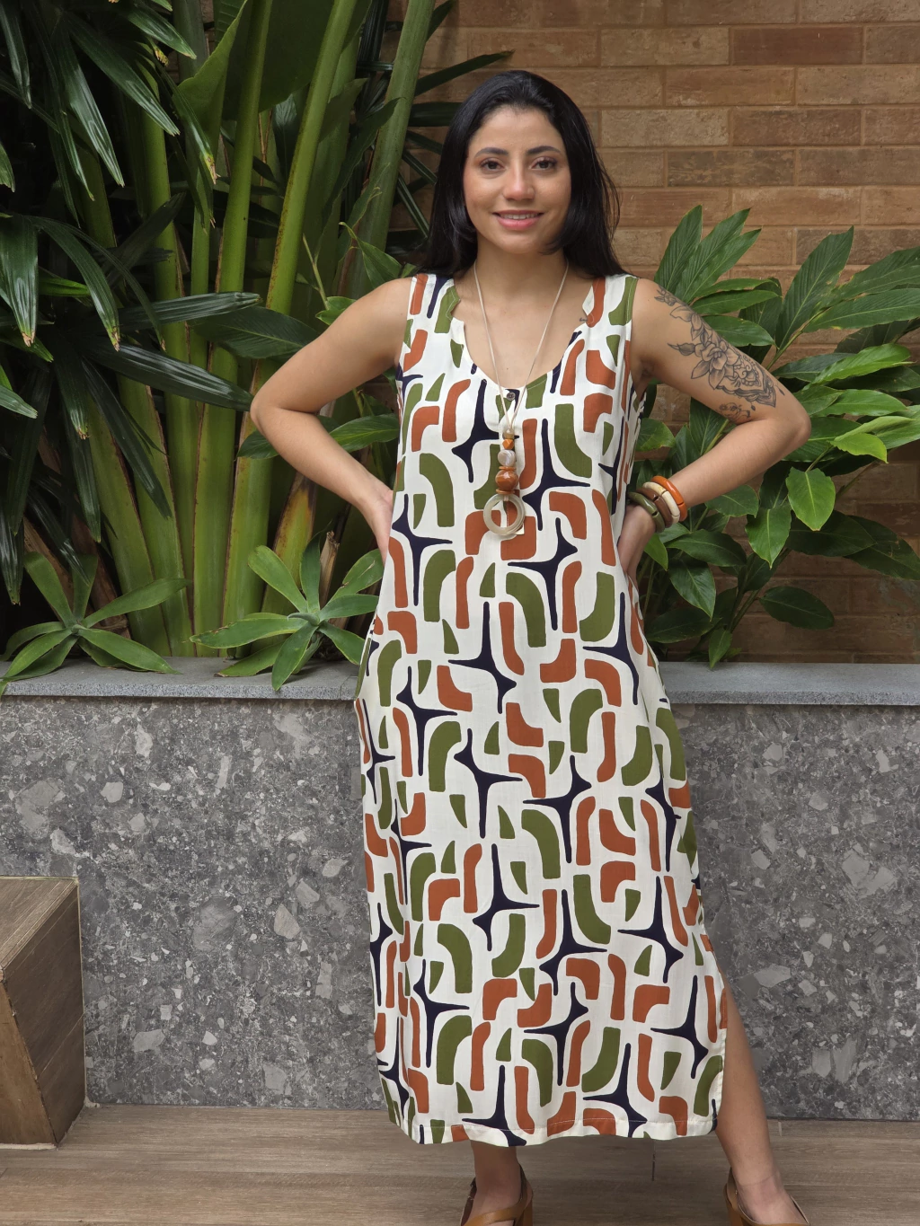 Vestido viscolinho comprimento mid com pequena abertura na lateral e bolso .Não tem forro