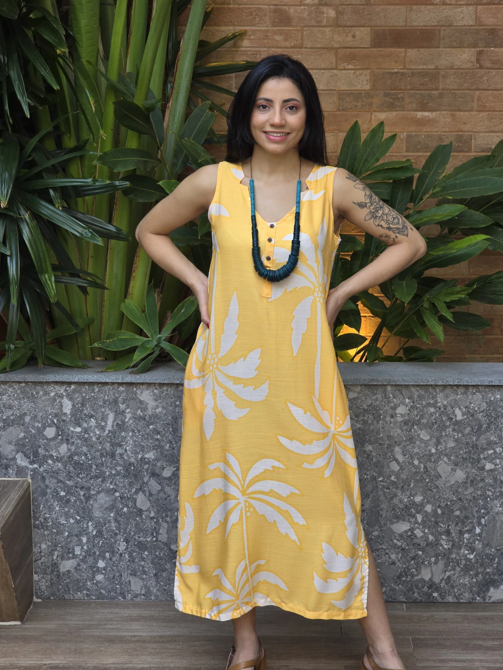Vestido viscolinho comprimento mid com pequena abertura na lateral e bolso .Não tem forro